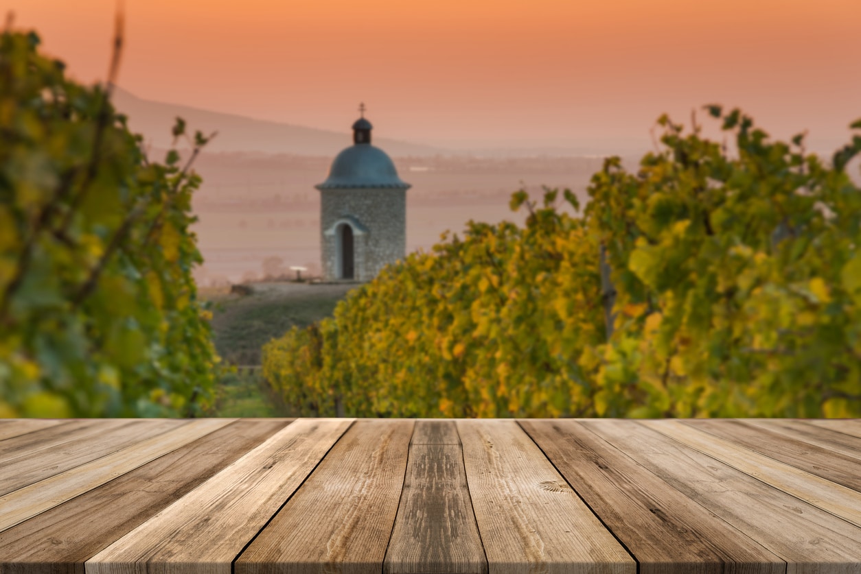 Vineyards in Moravia, wooden boards product display, montage and presentation